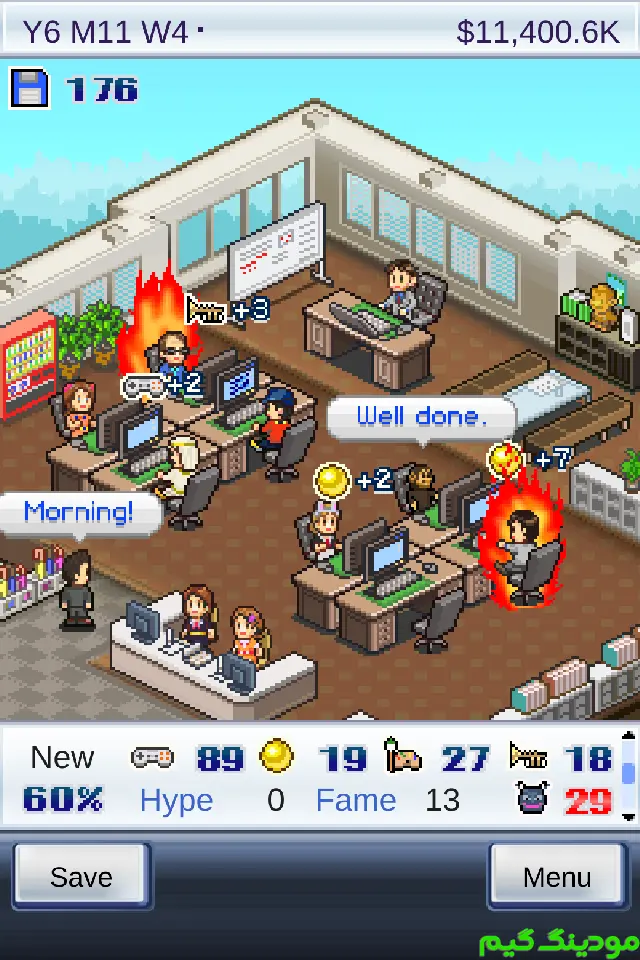 ویژگی های بازی Game Dev Story + Mod داستان توسعه بازیهای ویدئویی هک شده :