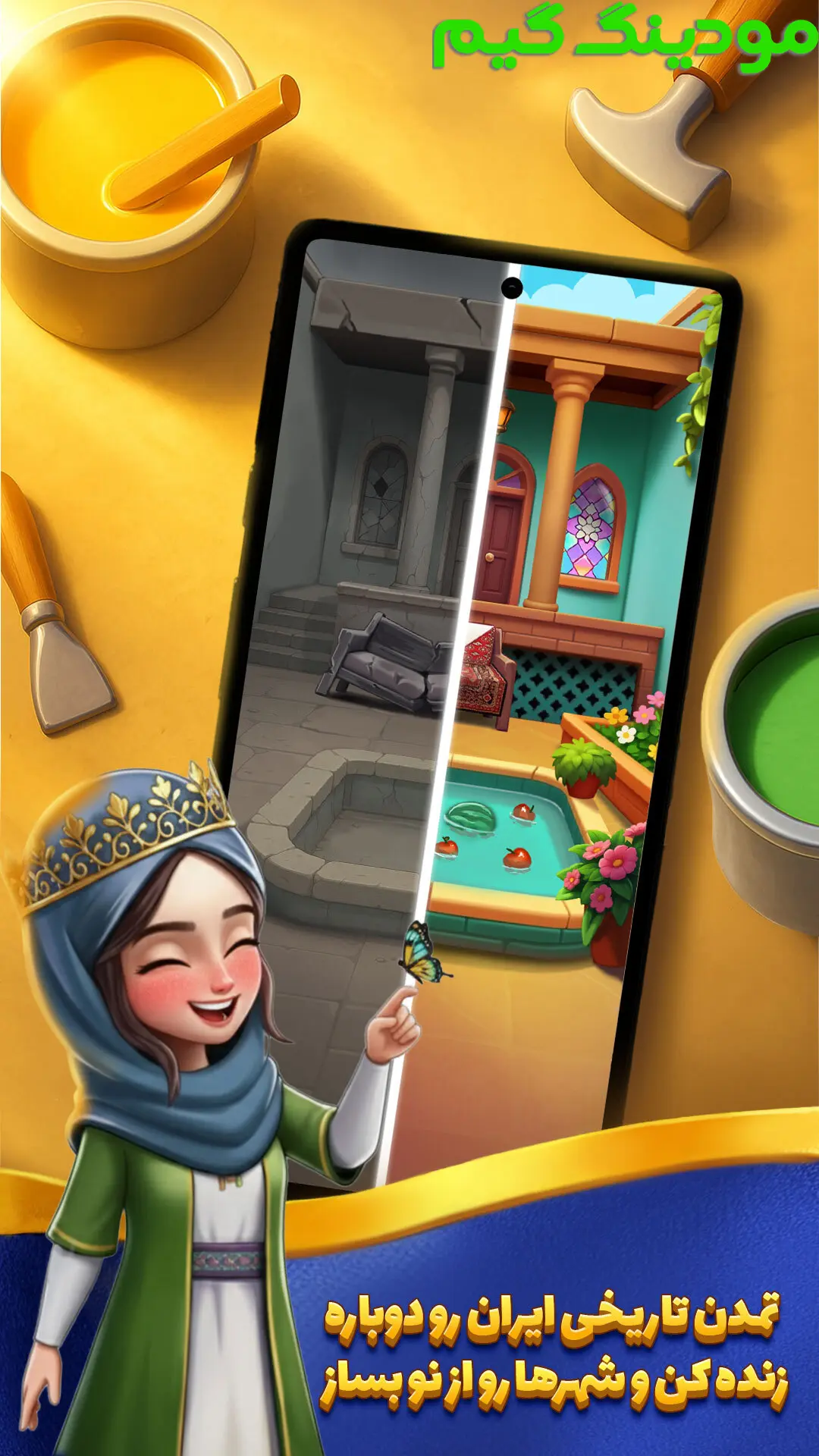 بازی قصر پوران | بازی پازلی و جورچین مود شده در سبک معمولی و تفننی توسط استودیو بازی سازی معروف و محبوب ایرانی میرکاگیمز در مودینگ گیم به صورت رایگان برای اندروید منتشر شد.این بازی اثری ایرانی در سبک پازلی و جورچین است که با هدف ترکیب سرگرمی، معما و روایت داستانی ساخته شده است. این بازی در ظاهر ساده به نظر می رسد، اما در عمق خود مجموعه ای از مراحل متنوع و طراحی های هوشمندانه دارد که بازیکن را درگیر روندی آرام، فکری و در عین حال لذت بخش می کند. در دنیای رنگارنگ و خیال انگیز این بازی، بازیکن در نقش شخصیتی قرار می گیرد که ماموریت دارد قصر با شکوه پوران را بازسازی کند. قصر، نمادی از گذشته ای پر افتخار و تاریخی است که در طول زمان فرسوده شده و حالا با کمک ذهن خلاق و دستان توانای بازیکن، دوباره جان می گیرد. هر پازل، هر معما و هر مرحله، بخشی از این بازسازی است،و در پس هر پیروزی کوچک، قدمی به سوی احیای شکوه از دست رفتهی قصر برداشته می شود.بازی بر پایه ی مکانیک های کلاسیک پازل و جورچین طراحی شده است، اما سازندگان با افزودن عناصر ساخت و ساز و پیشرفت مرحله ای، آن را از دیگر بازی های مشابه متمایز کرده اند. در هر مرحله، بازیکن باید قطعات هم رنگ یا هم نوع را در کنار هم قرار دهد تا با ترکیب یا حذف آن ها امتیاز لازم برای گذر از مرحله به دست آید. اما در اینجا هدف صرفا کسب امتیاز نیست،بلکه هر مرحله با خود تغییری در دنیای بازی می آورد. بازسازی بخشی از قصر، افزودن جزئیات تازه، یا دسترسی به بخش جدیدی از فضای بازی، همگی وابسته به عملکرد بازیکن در حل معماهاست. این ترکیب ظریف میان پازل و پیشرفت محیطی باعث شده بازی حس زنده و پویا داشته باشد، به گونه ای که بازیکن احساس می کند تلاشش تاثیر مستقیم بر نتیجه دارد.در کنار طراحی گیم پلی ساده و قابل درک، بازی از لحاظ گرافیکی اثری چشم نواز است. طراحان بصری با الهام از معماری ایرانی، کاشی کاری های سنتی، رنگ های گرم و جزئیات دقیق در طراحی فضاها، جهانی خلق کرده اند که در عین فانتزی بودن، حس آشنایی فرهنگی را در ذهن بازیکن زنده می کند. نورپردازی نرم و رنگ های زنده باعث شده محیط بازی حس گرمی و آرامش خاصی داشته باشد. هر بخش از قصر با دقت طراحی شده تا بازتابی از زیبایی شناسی ایرانی باشد،از ستون های آبی فیروزه ای تا پنجره های مشبک و باغ های اطراف قصر که با پیشرفت در بازی بازسازی می شوند. این توجه به جزئیات هنری، به بازی شخصیتی خاص داده و آن را از دیگر آثار پازلی متمایز کرده است.یکی از نکات قابل توجه در بازی، استفاده از دو شخصیت محوری به نام های فرهاد و پوران است. این دو نه تنها نام هایی برگرفته از فرهنگ ایرانی دارند، بلکه در ساختار داستانی بازی نیز نماد نوعی همراهی و همکاری اند. فرهاد به عنوان شخصیتی فعال، نمایانگر تلاش و پشتکار است و پوران، نماد خرد و صبر می باشد.تعامل این دو در روند داستان، در قالب گفتگوها یا پیشرفت های محیطی حس می شود و بازیکن به تدریج میان این دو رابطه ای احساسی برقرار می کند. هر موفقیت در بازی نه تنها بازسازی قصر، بلکه پیشرفتی در رابطه ی میان آن هاست،رابطه ای که به تدریج معنا پیدا می کند و به بازیکن انگیزه ادامه می دهد.از نظر گیم پلی، بازی با مکانیک ساده ی تطبیق سه تایی آغاز می شود، اما در ادامه با معرفی اهداف متنوع تر و ابزارهای کمکی تازه، چالش برانگیزتر می گردد. در مراحل ابتدایی تنها کافی است آیتم های مشابه را کنار هم قرار دهید تا حذف شوند، اما به مرور، چیدمان پیچیده تر می شود و اهداف خاصی مثل شکستن موانع، آزاد کردن الماس ها یا جمع آوری عناصر خاص به بازی افزوده می شود. با هر مرحله، بازیکن نه تنها مهارت های جدیدی کسب می کند، بلکه یاد می گیرد چطور با استراتژی های بهینه تر معماها را سریع تر حل کند. این روند یادگیری تدریجی باعث شده بازی حس رشد طبیعی داشته باشد و بازیکن احساس خستگی یا تکرار نکند.در عین حال، محدودیت حرکت ها یا زمان در برخی مراحل، هیجان بازی را افزایش می دهد و حس 