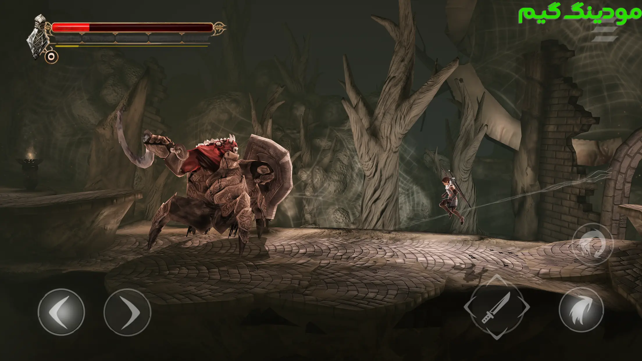 اما چیزی که این بازی را از دیگر آثار مشابه متمایز می کند، توانایی اش در خلق اتمسفری منحصر به فرد است. هر محیط با دقتی مثال زدنی طراحی شده، از قلعه های فرو ریخته تا غارهای تاریک و دالان هایی که نور مشعل تنها منبع روشنایی شان است. ترکیب رنگ ها، نورپردازی ها و سایه ها به گونه ای در هم تنیده شده اند که بدون نیاز به کلمات، حس ترس، تنهایی و کنجکاوی را در دل بازیکن زنده می کنند. موسیقی و صداگذاری نیز کاملا با فضای بازی هماهنگ هستند. هر ضربه ی شمشیر، هر گام بر زمین سنگی و هر فریاد دشمن، با کیفیتی بالا و تاثیرگذار طراحی شده است تا تجربه ی بازیکن در جهان تاریک بازی کامل شود. این دقت در طراحی صوتی و بصری باعث می شود که حتی اگر برای چند دقیقه فقط صبر کنید و به محیط نگاه کنید، باز هم حس سنگینی و مرموزی بازی را درک کنید گویی این سرزمین زنده و از حضور شما با خبر است.یکی از بخش های هیجان انگیز بازی، نبرد با باس هاست. هر باس به صورت ویژه طراحی شده و نه تنها از نظر ظاهری عظیم و تاثیرگذار است بلکه از لحاظ گیم پلی نیز چالشی منحصر به فرد ارائه می دهد. باس ها معمولا چندین فاز مختلف دارند و در هر فاز، الگوی حملاتشان تغییر می کند، بنابراین نیاز است که هم صبور باشید و هم سریع یاد بگیرید. هیچ مبارزه ای شبیه دیگری نیست و پیروزی بر هر کدام حس واقعی موفقیت و پیشرفت می دهد. این نبردها لحظات اوج بازی هستند، جایی که تمام مهارت هایی که تا آن لحظه آموخته اید، در معرض آزمایش قرار می گیرند. ترکیب شدت مبارزات، طراحی دقیق باس ها و موسیقی پر تنش، این لحظات را به یادماندنی و نفس گیر می کند.از نظر فنی، بازی یکی از بهترین نمونه های بهینه سازی در میان عناوین موبایلی محسوب می شود. گرافیک سه بعدی دقیق، انیمیشن های نرم، و طراحی بصری چشم نواز، همگی در قالبی قرار گرفته اند که روی طیف گسترده ای از دستگاه ها اجرا می شود بدون آنکه افت عملکرد محسوسی دیده شود. کنترل ها چه در حالت لمسی و چه با کنترلر فیزیکی، واکنشی و دقیق هستند. یکی از ویژگی های ارزشمند بازی امکان تنظیم شخصی کنترل هاست، به طوری که بازیکن بتواند دکمه ها را بر اساس راحتی خود جابجا کند. همین موضوع تجربه ی بازی را برای افراد مختلف دلپذیرتر می کند.علاوه بر این، بازی کاملا آفلاین است، یعنی بدون نیاز به اتصال اینترنتی هم می توان وارد دنیای بازی شد و ساعت ها در آن غرق شد، ویژگی ای که در دنیای امروز بازی های موبایلی کمتر یافت می شود.داستان در طول بازی بیشتر از طریق محیط روایت می شود تا توسط دیالوگ یا متن های طولانی تعریف شود.این سبک روایت، بازیکن را وادار می کند تا از نشانه ها، طراحی محیط، و قطعات کوتاه اطلاعاتی که پیدا می کند، تصویر بزرگ تری از آنچه در گذشته ی این سرزمین رخ داده، بسازد. همین رمزآلود بودن روایت باعث می شود که بازی حس عمق و ابهام داشته باشد و بازیکن را به جستجو و تفسیر وادارد. پادشاه گمشده، سقوط تمدن، نیروهای اهریمنی و شجاعت جنگجوی تنها، همه در قالبی غیر مستقیم روایت می شوند تا تخیل بازیکن را درگیر کنند. این روش، همزمان حس کنجکاوی را تقویت می کند و حس تعلق به جهان بازی را افزایش می دهد.