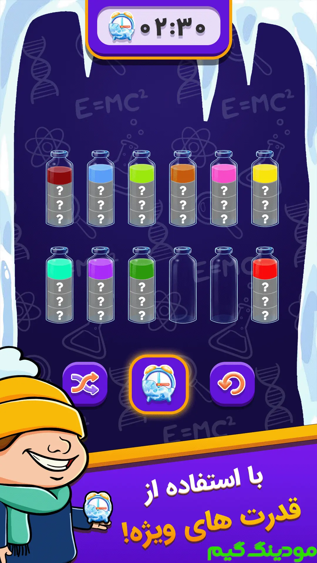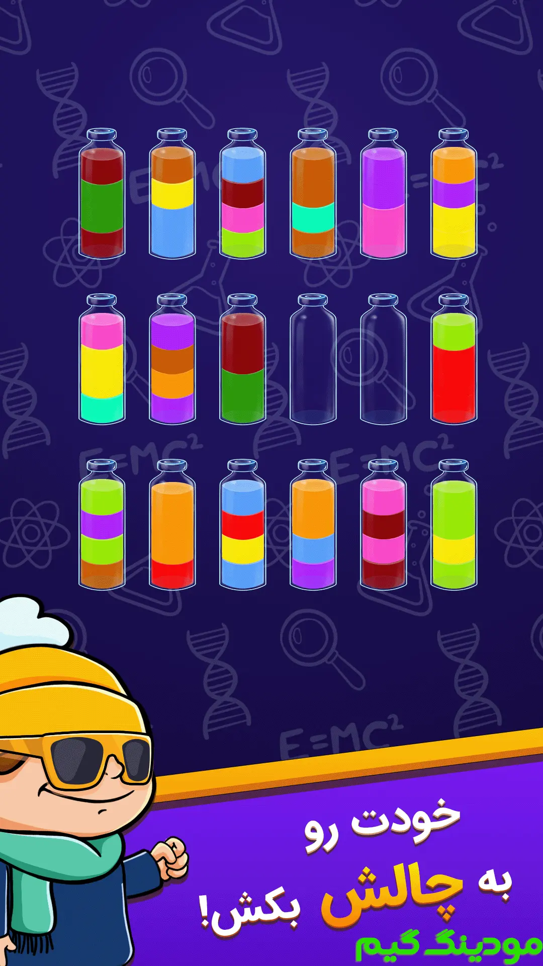 بازی کیمیاگر مود شده در سبک معمایی توسط استودیو بازی سازی معروف و محبوب ایرانی دیجی استودیو در مودینگ گیم به صورت رایگان برای اندروید منتشر شد.این بازی یک عنوان پازل فکری اندرویدی می باشد که با استقبال چشمگیر کاربران مواجه شده است، و این استقبال به دلیل ترکیب منحصر به فرد چالش ذهنی و تجربه بصری جذاب است، زیرا بازیکنان را به دنیایی رنگارنگ و جادویی دعوت می کند که در آن هدف اصلی حل پازل هایی مبتنی بر مرتب سازی و ترکیب رنگ ها در بطری ها است و این بازی با طراحی محیطی روشن، زیبا و دلنشین که از رنگ های شفاف و انیمیشن های روان استفاده می کند، سعی دارد تجربه ای هم سرگرم کننده و هم تمرکزی فراهم آورد که ذهن بازیکن را درگیر تفکر منطقی، برنامه ریزی حرکات و تصمیم گیری استراتژیک کند و در عین حال حس آرامش و لذت بصری را هم به بازیکن منتقل نماید، به گونه ای که حتی در سطوح اولیه بازی که مکانیک ها ساده به نظر می رسند، بازیکن می تواند بدون نیاز به راهنمایی از زیبایی رنگ ها و طراحی مینیمال لذت ببرد، و با پیشرفت در بازی و ورود به مراحل پیچیده تر که شامل افزایش تعداد بطری ها، تنوع رنگ ها و محدودیت های حرکتی است، تجربه بازی هم از لحاظ ذهنی چالش برانگیزتر و هم از نظر بصری جذاب تر می شود. موسیقی ملایم، صداگذاری مناسب و طراحی کاربر پسند رابط کاربری، باعث شده بازی برای بازیکنان با رده سنی مختلف و حتی کسانی که به دنبال سرگرمی کوتاه مدت هستند، تجربه ای بدون خستگی و دلنشین ارائه دهد. همچنین بازی از نظر روانشناختی به عنوان یک تمرین ذهنی و تقویت تفکر منطقی عمل می کند، زیرا بازیکن هر حرکت خود را باید با دقت برنامه ریزی کند و تصمیمات اشتباه می تواند منجر به بن بست شود و نیاز به ریست مرحله پیدا کند، بنابراین ترکیب فضای آرامش بخش و چالش ذهنی باعث می شود این اثر به عنوان یک بازی پازل فکری کامل و جذاب مطرح شود که هم لذت بصری دارد و هم ذهن را درگیر می کند و در مجموع تجربه ای جامع و سرگرم کننده ارائه می دهد.بازی کیمیاگر تا به امروز بیش از 40 هزار بار در سرتاسر ایران توسط کاربران دانلود شد.