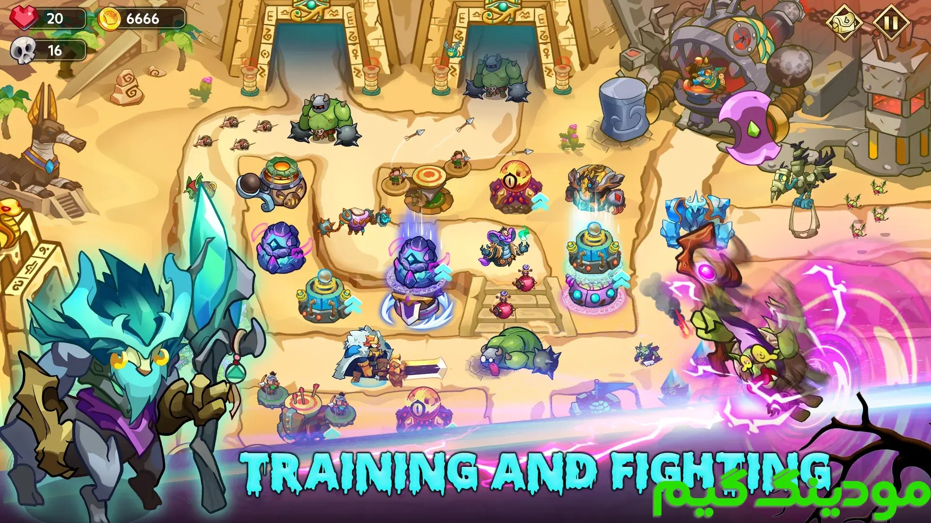 تنوع دشمنان یکی دیگر از نقاط قوت بازی است. از نیروهای سبک و سریع گرفته تا غول های عظیم و مقاوم، هر نوع دشمن رفتار و چالش خاص خود را دارد. این امر باعث می شود بازیکن نتواند تنها به یک استراتژی متکی باشد و همواره نیازمند تنظیم تاکتیک ها و استفاده هوشمندانه از برج ها باشد. موج های دشمنان طراحی شده اند تا ترکیبی از سرعت، قدرت و قابلیت های ویژه ارائه دهند که تجربه بازی را پویا و جذاب نگه می دارد.بازی انواع برج های دفاعی مختلف را ارائه می دهد که هر یک نقش خاص خود را در نبرد ایفا می کنند. برج های تیرانداز برای مقابله با دشمنان سریع، برج های انفجاری برای تخریب گروهی دشمنان و برج های جادویی برای ایجاد اثرات ویژه مانند کاهش سرعت دشمن یا آسیب منطقه ای، همگی قابلیت ارتقا دارند.بازیکن می تواند با ارتقای برج ها، توانایی های جدید و قدرت های تخریبی بیشتری به دست آورد که برای مراحل بالاتر و دشمنان قوی تر ضروری است.روند ارتقای برج ها و استفاده از توانایی های ویژه، بازی را به تجربه ای استراتژیک و عمیق تبدیل می کند.بازیکن باید تصمیم بگیرد که کدام برج ها را ارتقا دهد و چه ترکیبی از برج ها بیشترین بازدهی را در مراحل مختلف دارد. این فرآیند باعث می شود هر مرحله چالشی تازه باشد و بازیکن همواره به تفکر و برنامه ریزی دقیق نیاز داشته باشد. تعادل میان مدیریت منابع، ارتقا و چینش برج ها، عنصر اصلی تجربه بازی را تشکیل می دهد.