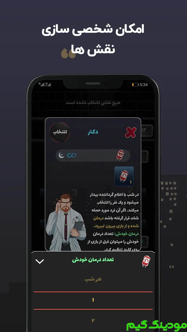 یکی از برجسته ترین ویژگی های بازی تنوع نقش ها و امکانات شخصی سازی گسترده است. نقش های سنتی مانند شهروند، مافیا، دکتر و کارآگاه در بازی وجود دارند و علاوه بر آن، میزبان می تواند نقش های دیگر را نیز به دلخواه اضافه کند و ترتیب بازیکنان را تنظیم نماید. این تنوع باعث می شود هر جلسه بازی منحصر به فرد باشد و بازیکنان بتوانند استراتژی های مختلف خود را آزمایش کنند.توزیع نقش ها به صورت تصادفی انجام می شود تا بازی منصفانه و هیجان انگیز باقی بماند و هیچ بازیکنی بر اساس ترتیب قرارگیری برتری نداشته باشد. امکانات مدیریتی شامل کنترل زمان صحبت، شمارش دقیق رای ها، اعلام نتایج و مدیریت مراحل بازی به صورت خودکار باعث می شود حتی میزبان های تازه کار نیز بتوانند جلسات بازی را با اعتماد کامل هدایت کنند. صداگذاری حرفه ای برای اعلام نقش ها و عملیات شبانه، حس تعلیق و هیجان را افزایش می دهد و بازیکنان را به تجربه ای کاملا جذاب و تعاملی وارد می کند.تجربه کاربری در این بازی به گونه ای طراحی شده که تمامی مراحل از انتخاب تعداد بازیکنان و توزیع نقش ها تا مدیریت رای گیری و اعلام نتایج، به ساده ترین و قابل فهم ترین شکل ارائه شوند. این طراحی باعث می شود بازیکنان بتوانند تمرکز خود را صرف تعامل، تحلیل و برنامه ریزی استراتژیک کنند و نگرانی از بابت پیچیدگی های فنی نداشته باشند. صدابرداری حرفه ای و اعلان های صوتی باعث افزایش هیجان در طول بازی می شوند و هر مرحله از بازی، چه شب و چه روز، تجربه ای پر انرژی و تعاملی برای جمع فراهم می کند. علاوه بر این، امکان تنظیم نقش ها، تعداد مافیا و شهروندان، و افزودن نقش های ویژه باعث می شود هر جلسه بازی کاملا منحصر به فرد باشد و بازیکنان بتوانند به روش های مختلف استراتژی های خود را پیاده کنند و به چالش کشیده شوند.ویژگی های برجسته و مزایای بازی شامل خودکارسازی کامل روند بازی، پشتیبانی از جمع های بزرگ تا 35 نفر، تنوع گسترده نقش ها، امکانات سفارشی سازی، صداگذاری حرفه ای، اعلام خودکار نتایج و انعطاف پذیری بالا است. این ویژگی ها باعث می شوند بازیکنان بتوانند جلسات گروهی هیجان انگیز، روان و بدون اختلال برگزار کنند و تمامی شرکت کنندگان از تجربه ای تعاملی و سرگرم کننده بهرهمند شوند. بازی همچنین برای تازه کارها مناسب است، زیرا روند و نقش ها به صورت ساده و قابل فهم ارائه شده اند و افراد بدون تجربه قبلی می توانند به راحتی وارد بازی شوند و لذت ببرند.صدای اعلان ها و موسیقی پس زمینه هیجان بازی را افزایش می دهد و جمع را به مشارکت فعال تر تشویق می کند، در حالی که شمارش دقیق رای ها و کنترل زمان صحبت از بروز هر گونه اختلال جلوگیری می کند. امکان بازگشت به مرحله شب یا روز قبل تجربه بازی را انعطاف پذیر و قابل اعتماد می سازد و بازیکنان می توانند بدون نگرانی از خطا یا اشتباه، جلسات خود را ادامه دهند.