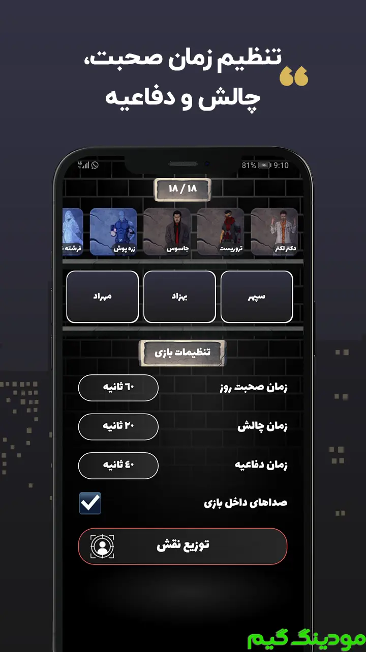 علاوه بر این، بازی امکان تعامل اجتماعی قوی را فراهم می کند، زیرا بازیکنان مجبور هستند بر اساس مشاهده رفتار دیگران، اظهارات و شواهد غیر مستقیم تصمیم گیری کنند و در نتیجه مهارت های تحلیلی، استدلال و همکاری جمعی تقویت می شوند. این ویژگی ها باعث می شوند جلسات بازی نه تنها سرگرم کننده باشند، بلکه فرصتی برای توسعه توانایی های شناختی و اجتماعی بازیکنان فراهم کنند.همچنین قابلیت سفارشی سازی دقیق نقش ها و افزودن چالش های مختلف، هر جلسه بازی را به تجربه ای متفاوت و تازه تبدیل می کند که انگیزه بازیکنان را برای مشارکت فعال افزایش می دهد.با استفاده از این بازی، بازیکنان می توانند جلسات گروهی مافیا را با هیجان کامل، بدون نگرانی از اختلال و با تجربه ای حرفه ای برگزار کنند.این بازی ترکیبی از مدیریت هوشمند، صداگذاری حرفه ای، امکانات سفارشی سازی و تجربه کاربری روان است که باعث می شود تمام مراحل بازی به شکل یکپارچه و بدون مشکل انجام شود. بازیکنان می توانند در هر جلسه استراتژی های مختلف خود را امتحان کنند، با تحلیل رفتار دیگران تصمیم گیری کنند و تجربه ای سرگرم کننده و آموزنده داشته باشند. هر جلسه بازی، به دلیل امکانات گسترده، تنوع نقش ها و مدیریت دقیق نرم افزار، تجربه ای متفاوت، پویا و جذاب خواهد بود که یادگیری و مشارکت همه بازیکنان را تشویق می کند.در نهایت، بازی مافیا پلاس یک ابزار کامل و منحصر به فرد برای اجرای بازی مافیا در جمع های دوستانه و خانوادگی است که با ارائه تجربه ای خودکار، دقیق و هیجان انگیز، امکان برگزاری جلسات سرگرم کننده و تعاملی را برای تمامی شرکت کنندگان فراهم می کند. این بازی نه تنها نسخه دیجیتال روند سنتی مافیا را ارائه می دهد، بلکه با امکانات گسترده شخصی سازی، صداگذاری حرفه ای و مدیریت هوشمند، تجربه ای بی نظیر و لذت بخش از بازی گروهی فراهم می کند و بازیکنان می توانند هر بار تجربه ای متفاوت و پر هیجان از مافیا داشته باشند.گرافیک بازی مافیا پلاس | گرداننده خودکار مافیا به شکل HD حیرت آوری همراه با جلوه های صوتی زیبا و جذابی و گیم پلی اعتیادآور و سرگرم کننده ای طراحی شد .