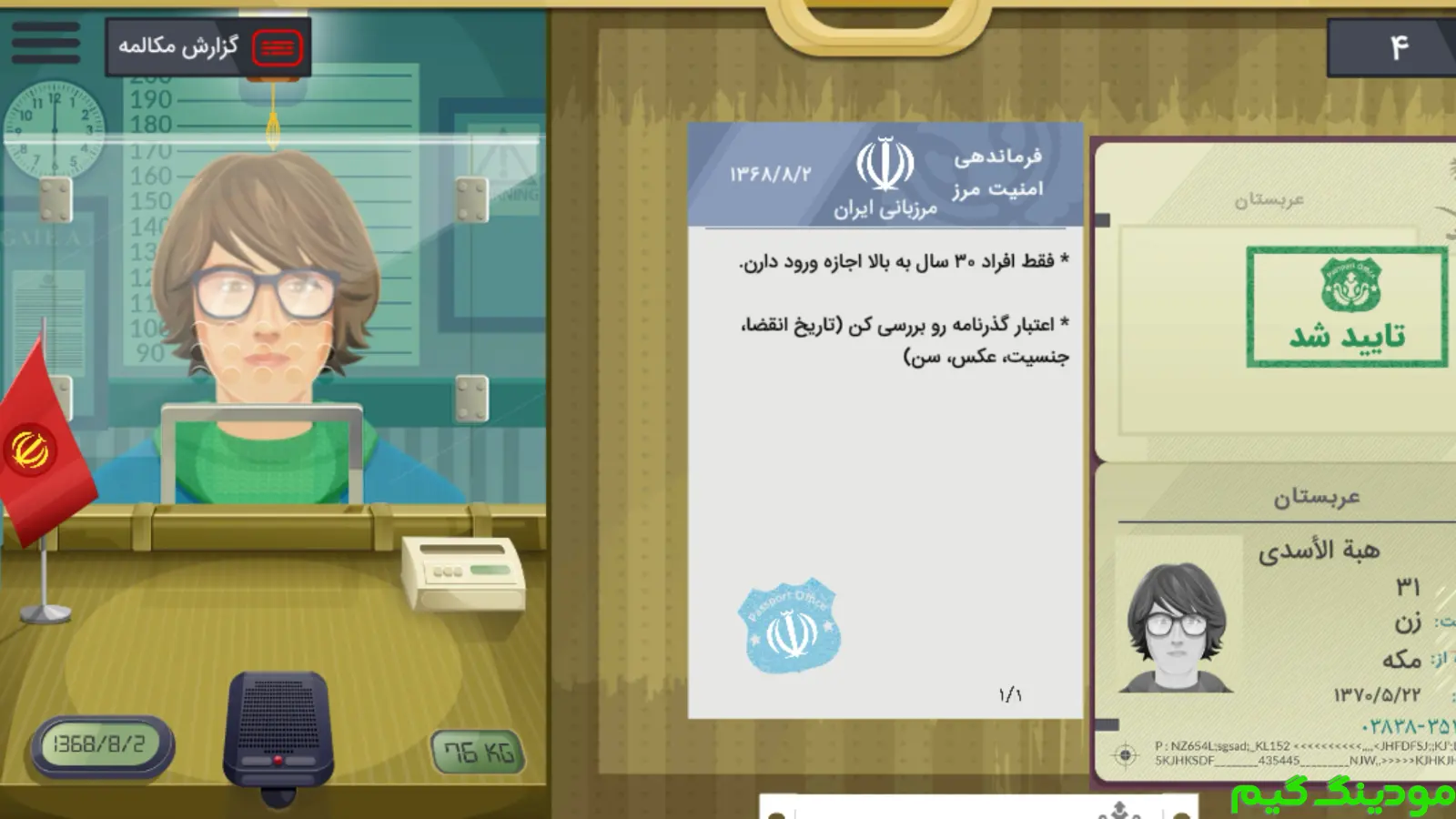 بازی مرزبان | مدیریت اتباع مود شده در سبک شبیه سازی توسط استودیو بازی سازی معروف و محبوب ایرانی روهان در مودینگ گیم به صورت رایگان برای اندروید منتشر شد.در این بازی، بازیکن در نقش یک افسر کنترل مرز قرار می گیرد، کسی که مسئولیت مدیریت ورود و خروج افراد از مرز را بر عهده دارد. از همان لحظه ای که وارد محیط کاری می شوید، حس مسئولیت و فشار واقعی این شغل را تجربه میکنید؛ جایی که هر تصمیم شما می تواند تاثیر مستقیم بر زندگی افراد داشته باشد. بازی شما را در مرکز عملیات مرزی قرار می دهد، جایی که مسافران مختلف با مدارک متفاوت و اهداف متعدد به سمت شما می آیند و شما باید با دقت بالا، مدارک آن ها را بررسی کرده و تصمیم بگیرید که چه کسی اجازه عبور پیدا می کند و چه کسی باید متوقف شود. این تجربه نه تنها مهارت های شناسایی و دقت را تقویت می کند، بلکه شما را درگیر تحلیل رفتار انسانی و تصمیم گیری های اخلاقی می کند.محیط بازی با جزئیات طراحی شده تا حس حضور واقعی در یک ایستگاه مرزی را منتقل کند. میز کنترل، مدارک، مهرها، کامپیوترهای موجود و حتی صف مسافران، همگی به گونه ای طراحی شده اند که بازیکن را به طور کامل در نقش مرزبان غرق کنند. هر مسافر دارای هویت، مدارک و داستان مختص به خود است و تعامل با آن ها تجربه ای متفاوت در هر مرحله ایجاد می کند. برخی مسافران مدارک کامل و قانونی دارند، برخی مدارک ناقص دارند و ممکن است هدفشان عبور قانونی باشد یا صرفا قصد دور زدن قوانین را داشته باشند. در موارد خاص، شما با افرادی مواجه می شوید که مدارک جعلی همراه دارند یا قصد ورود غیر مجاز دارند، و در چنین لحظاتی مهارت، دقت و تصمیم گیری شما به آزمون گذاشته می شود.در طول بازی، سرعت عمل و دقت اهمیت ویژه ای دارند. اگر شما مدارک را با عجله بررسی کنید، ممکن است تخلف یا جعل مدارک نادیده گرفته شود و اگر بیش از حد وقت صرف کنید، صف مسافران طولانی شده و فشار روانی و استرس شما افزایش می یابد. این تعادل میان سرعت و دقت، بازی را چالشی و جذاب می کند، به طوری که شما باید همواره تمرکز داشته باشید و تصمیمات سریع و درست بگیرید. فشار زمان، انتخاب های اخلاقی و مواجهه با موقعیت های غیر منتظره باعث می شود که تجربه بازی بیش از یک شبیه ساز ساده باشد و به یک تجربه ی ذهنی و تعاملی عمیق تبدیل شود.بازی مرزبان | مدیریت اتباع تا به امروز بیش از 40 هزار بار در سرتاسر ایران توسط کاربران دانلود شد.