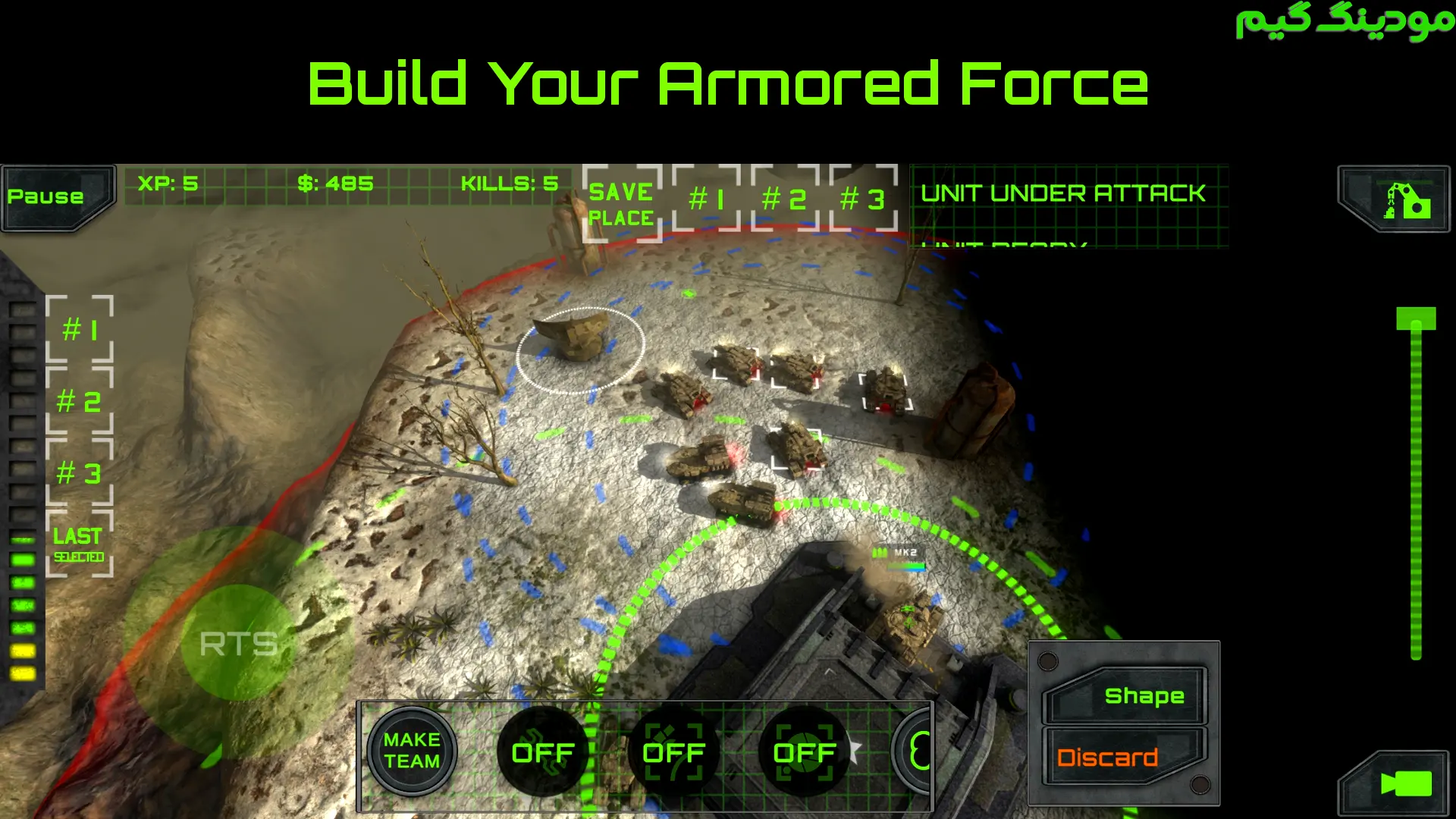 بازی Operative Division – RTS TPS + Mod بخش عملیاتی مود شده در سبک استراتژی توسط استودیو بازی سازی معروف و محبوب CanvasieGames در مودینگ گیم به صورت رایگان برای اندروید منتشر شد.این بازی تجربه ای منحصر به فرد را در سبک ترکیبی استراتژی زمان واقعی و تیراندازی سوم شخص ارائه می دهد، به طوری که بازیکن می تواند همزمان به فرماندهی کل نیروها از نمای بالا بپردازد و هم واحد های رزمی خود را به طور مستقیم کنترل کند. این امکان، عمق تاکتیکی بازی را بسیار افزایش می دهد و بازیکنان را ملزم می کند تا تصمیمات سریع و حساب شده ای در لحظات حساس اتخاذ کنند. مسیرهای هر ماموریت به گونه ای طراحی شده اند که بازیکن نه تنها باید به سرعت و دقت در شلیک و مانور توجه کند، بلکه استراتژی های کلی برای بهره برداری از موقعیت های زمین و منابع موجود نیز در ذهنش برنامه ریزی شود. در حالت استاندارد بازی، بازیکن با جناح مقابل رو به رو می شود و باید از ترکیبی از تاکتیک های هجومی و دفاعی بهره ببرد تا ماموریت ها را با موفقیت به پایان برساند.هر ماموریت دارای شرایط خاص خود است،برای مثال، برخی ماموریت ها نیازمند نفوذ مخفیانه به پایگاه دشمن هستند و کنترل دقیق نیروها و استفاده از پوشش ها در این ماموریت ها اهمیت بالایی دارد، در حالی که در ماموریت های دیگر، میدان نبرد وسیع است و بر مدیریت منابع و جایگذاری واحدها تمرکز می شود. حالت Skirmish یا نبرد های تصادفی نیز بازیکنان را با نقشه های پویا و موانع متغیر رو به رو می کند، به طوری که هیچ تجربه ای در این حالت تکراری نخواهد بود و هر بار بازیکن باید استراتژی جدیدی اتخاذ کند. این ویژگی، ارزش تکرار بازی را بسیار بالا می برد و بازیکنان را تشویق می کند تا مهارت های خود را در مواجهه با شرایط غیر قابل پیش بینی ارتقا دهند.نکته مهم دیگر، قابلیت تغییر بین کنترل مستقیم واحدها و فرماندهی کل نیروها است که اجازه می دهد بازیکن در هر لحظه تصمیم بگیرد به کدام جنبه از نبرد توجه کند. این تغییرات، علاوه بر افزایش عمق استراتژیک، تجربه ای پویا و هیجان انگیز برای بازیکن ایجاد می کند و حس مسئولیت و کنترل کامل بر میدان نبرد را تقویت می کند. به همین دلیل،این اثر نه تنها یک بازی اکشن، بلکه یک تجربه استراتژیک کامل است که نیازمند تفکر، تحلیل و تصمیم گیری لحظه ای است و بازیکن را درگیر خود نگه می دارد.بازی Operative Division – RTS TPS تا به امروز بیش از 10 هزار بار در سرتاسر دنیا توسط کاربران دانلود شد.