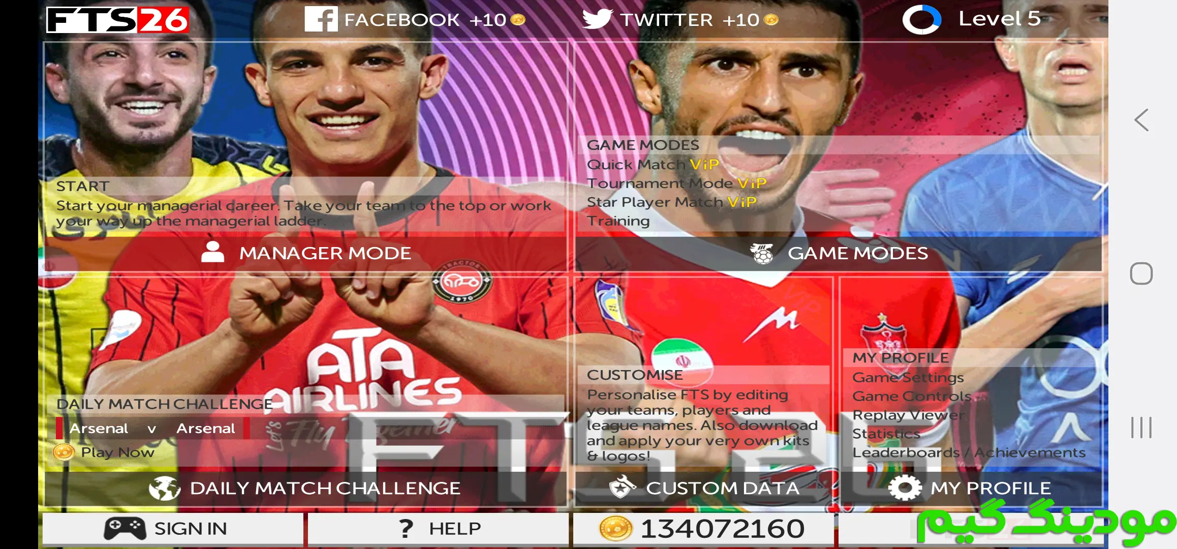 بازی FTS 2026 همراه لیگ برتر ایران 1404/1405 برای اندروید در سبک ورزشی توسط استودیو بازی سازی معروف و محبوب مودینگ گیم در مودینگ گیم برای اندروید منتشر شد.این عنوان تجربه ای است جامع و بی نظیر از فوتبال دیجیتال که توانسته استانداردهای بازی های فوتبالی موبایل را به سطح حرفه ای ارتقا دهد و تجربه ای تمام عیار از فوتبال واقعی را برای کاربران فراهم کند. این نسخه از بازی توسط شرکت First Touch توسعه یافته و در دسترس کاربران قرار گرفته است.ترکیب گرافیک پیشرفته، گیم پلی روان و طبیعی، هوش مصنوعی دقیق و حضور کامل لیگ ها و تیم های معتبر باعث شده است که این بازی یکی از محبوب ترین و کامل ترین آثار فوتبالی برای اندروید باشد و به سرعت در دل کاربران جایگاه ویژه ای پیدا کند. تجربه بازی، حتی برای کاربرانی که تازه با دنیای فوتبال دیجیتال آشنا شده اند، طبیعی، روان و جذاب است و توانایی ایجاد حس واقعی حضور در میدان فوتبال را دارد.گیم پلی بازی به گونه ای طراحی شده که کاربران می توانند کنترل کامل تیم خود را در دست داشته باشند و با انتخاب تاکتیک ها، ترکیب بازیکنان و استراتژی های مختلف، مسیر موفقیت تیم خود را در لیگ ها و تورنمنت ها هدایت کنند. حرکات بازیکنان، پاس ها، دریبل ها، تکل ها و شوت ها همگی به دقت شبیه سازی شده اند و واکنش ها به شرایط بازی بسیار طبیعی و واقع گرایانه است. این دقت در طراحی، امکان تجربه مسابقات حرفه ای و جذاب را فراهم می کند و هر بازیکنی، چه تازه کار و چه حرفه ای، می تواند ساعت ها سرگرمی و هیجان را تجربه کند. حالت های مختلف بازی شامل لیگ های معتبر اروپایی، لیگ های آمریکای جنوبی و شمالی، لیگ های عربستان و لیگ برتر ایران است که رقابت های متنوع و جذابی را در اختیار کاربران قرار می دهند و امکان تجربه مسابقات بین المللی و داخلی را به صورت همزمان فراهم می آورند.یکی از نقاط قوت این نسخه، حضور کامل لیگ برتر ایران فصل 1404/1405 همراه با تمامی تیم ها و بازیکنان بهروز است. تیم های ایرانی شامل، ذوب آهن،تراکتور، شمس آذر قزوین، سپاهان،صنعت نفت آبادان، پیکان، پرسپولیس،چادرملو،نساجی،مس رفسنجان،ملوان،فجر شهید سپاسی، گلگهر، فولاد، استقلال خوزستان، استقلال، خیبر خرم آباد و آلومینوم اراک هستند و تمامی نقل و انتقالات آنان بهروز شده است. این ویژگی باعث می شود کاربران تجربه ای واقعی از هدایت تیم های داخلی و شرکت در لیگ برتر ایران داشته باشند. علاوه بر این، چهار تیم بزرگ لیگ عربستان شامل الهلال، الاهلی، النصر و الاتحاد نیز به بازی اضافه شده اند تا تجربه مسابقات بین المللی کامل تر شود و کاربران بتوانند با تیم های آسیایی نیز رقابت کنند. حضور لیگ های معتبر آمریکای جنوبی و لیگ مکزیک، به همراه لایسنس رسمی لیگ های اروپایی، تجربه ای جامع و متنوع از فوتبال بین المللی ارائه می دهد و امکان تجربه رقابت های هیجان انگیز را برای بازیکنان فراهم می کند.گرافیک بازی به شکل قابل توجهی ارتقاء یافته است و طراحی استادیوم ها، چمن ها، بازیکنان و محیط بازی با جزئیات بالا انجام شده است. جزئیات بصری مانند نورپردازی، سایه ها، بافت چمن و حرکت بازیکنان حس حضور در مسابقه واقعی را ایجاد می کنند و تجربه ای بسیار طبیعی از فوتبال ارائه می دهند. اسکین ها و توپ های جدید، به همراه طراحی دقیق کیت های تیم های ملی و باشگاهی، جلوه ای حرفه ای و جذاب به بازی داده اند و منوهای بازی با طراحی ساده و کاربرپسند، امکان دسترسی سریع به حالت های مختلف بازی، ترکیب تیم ها و تورنمنت ها را فراهم می کنند و تجربه ای روان و لذت بخش از مدیریت فوتبال ارائه می دهند.