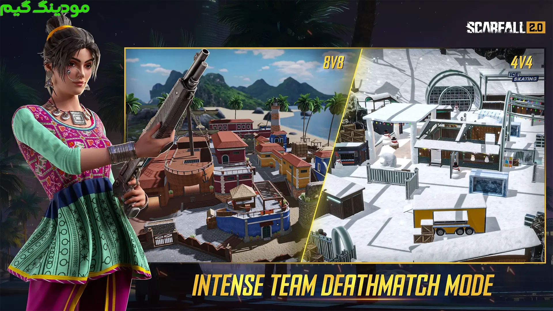 بازی ScarFall 2.0 : Battle Royale + Mod اسکارفال مود شده در سبک اکشن توسط استودیو بازی سازی معروف و محبوب Xsquads Tech Private Limited در مودینگ گیم به صورت رایگان برای اندروید منتشر شد.این عنوان یک بازی بتل رویال آنلاین برای دستگاه های اندروید است که تجربه ای منحصر به فرد از مبارزات چند نفره ارائه می دهد. این بازی با الهام از مکان های واقعی هند، محیط های متنوع و متناسب با سبک بتل رویال طراحی شده است. بازیکنان در این بازی می توانند به صورت انفرادی، دو نفره یا تیم های چهار نفره رقابت کنند و با استفاده از وسایل نقلیه مختلف مانند موتور، جیپ، ریکشا و حتی قطارهای محلی، در نقشه های گسترده بازی حرکت کنند.گیم پلی بازی بر اساس سیستم بتل رویال کلاسیک طراحی شده است، اما با ویژگی های خاصی که آن را از دیگر بازی های مشابه متمایز می کند.بازیکنان در شروع هر مسابقه از هواپیما یا هلیکوپتر به نقشه پرتاب می شوند و باید با جمع آوری اسلحه، تجهیزات و آیتم های پزشکی برای بقا تلاش کنند. هر مسابقه محدودیت زمانی دارد و منطقه امن به تدریج کوچک می شود تا بازیکنان را به مواجهه با یکدیگر سوق دهد. این مکانیزم باعث ایجاد تنش و هیجان بالا در طول مسابقه می شود.این بازی شامل چندین حالت بازی می باشد که هر یک تجربه متفاوتی ارائه می دهند. در حالت کلاسیک، 40 بازیکن در نقشه ای مشابه جزایر آندامان رقابت می کنند و هر بازیکن سه شانس بازگشت به بازی دارد. در حالت بقا، رقابت بین 100 بازیکن انجام می شود و امکان بازگشت به بازی وجود ندارد، که تجربه ای چالش برانگیز و استراتژیک تر ایجاد می کند. علاوه بر این، حالت های تیمی مانند Team Deathmatch امکان نبردهای سریع 4 در 4 یا 8 در 8 را در نقشه های اختصاصی مانند Snow Park و Goa فراهم می کنند.یکی دیگر از ویژگی های مهم بازی،تنوع وسایل نقلیه و امکان استفاده از آن ها برای جابجایی و تاکتیک های جنگی است. بازیکنان می توانند از موتور، جیپ، ریکشا و قطارهای محلی استفاده کنند که هر کدام سرعت، حفاظت و قابلیت مانور متفاوتی دارند. این تنوع وسایل نقلیه، استراتژی های متنوعی را در طول بازی ایجاد می کند و به بازیکنان امکان می دهد تاکتیک های متنوعی برای غافلگیری دشمنان خود استفاده کنند.کنترل های بازی قابل تنظیم هستند و بازیکنان می توانند حساسیت هدف گیری و چیدمان دکمه ها را مطابق سبک بازی خود تنظیم کنند.همچنین، سیستم چت صوتی زنده امکان ارتباط سریع و هماهنگی بین اعضای تیم را فراهم می کند، که در رقابت های تیمی اهمیت حیاتی دارد.این بازی با ترکیب این ویژگی ها، تجربه ای جذاب، چالش برانگیز و هیجان انگیز از سبک بتل رویال ارائه می دهد.بازی ScarFall 2.0 : Battle Royale تا به امروز بیش از 1 میلیون بار در سرتاسر دنیا توسط کاربران دانلود شد.