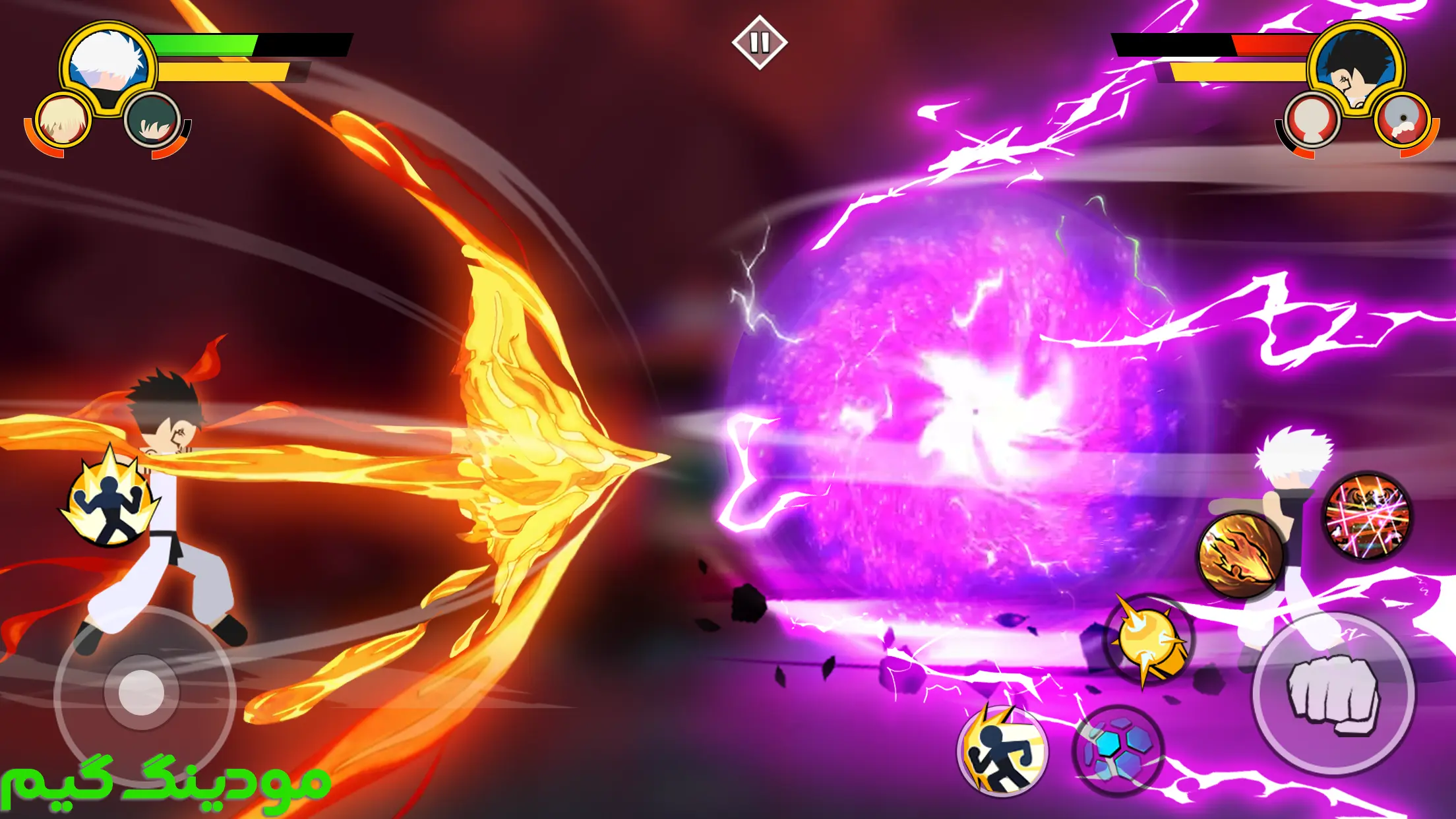 بازی Stickman Cursed: Phantom Fight + Mod استیکمن نفرین شده: مبارزه با شبح مود شده در سبک آرکید توسط استودیو بازی سازی معروف و محبوب Mana Games Studio در مودینگ گیم به صورت رایگان برای اندروید منتشر شد.این عنوان یک تجربه اکشن و مبارزه ای منحصر به فرد است که در دنیایی تاریک و نفرین شده جریان دارد. جهانی که در آن سایه ها و ارواح مرموز همه جا را فرا گرفته اند و بازیکن در نقش گروهی از قهرمانان استیکمن قرار می گیرد که مامور نجات جهان از شر نیروهای نفرین شده هستند. این بازی با وجود طراحی مینیمال استیک من ها، توانسته با حرکات روان، انیمیشن های جذاب و ترکیب های مبارزاتی هیجان انگیز، حس یک مبارزه واقعی را منتقل کند. داستان بازی بازیکن را درگیر ماجراجویی هایی می کند که هم چالش برانگیز و هم جذاب هستند و هر مرحله با دشمنانی متفاوت و تاکتیک های منحصر به فرد رو به رو می شود که نیازمند واکنش سریع و تفکر استراتژیک است.گیم پلی بازی بر پایه مبارزات سریع و پویای استیک من ها طراحی شده است و بازیکن می تواند با کنترل های ساده، حرکات ترکیبی، مهارت های ویژه و حملات نهایی را اجرا کند. سیستم حرکتی بازی امکان دویدن، پرش، جا خالی دادن و حمله در جهات مختلف را فراهم می کند، که باعث می شود هر نبرد حس واقع گرایانه و هیجان انگیز داشته باشد. مهارت های ویژه هر قهرمان با زمان بندی دقیق و ترکیب با حرکات دیگر، امکان ایجاد زنجیره حملات و ترکیب های کشنده را فراهم می کند و بازیکن با استفاده از توانایی های مختلف می تواند استراتژی های متفاوتی برای هر مبارزه انتخاب کند. این آزادی عمل باعث می شود تجربه بازی برای هر بازیکن متفاوت و منحصر به فرد باشد و حس پیشرفت و یادگیری مداوم را تقویت کند.بازیکن می تواند تیم خود را از میان مجموعه ای از قهرمانان استیک من با توانایی ها و مهارت های متفاوت انتخاب کند. هر قهرمان قدرت خاص خود را دارد و بازیکن می تواند ترکیب تیم را به گونه ای طراحی کند که متناسب با سبک بازی شخصی، هجومی، دفاعی یا ترکیبی باشد. در طول بازی، امکان ارتقای قهرمانان و باز کردن مهارت های جدید وجود دارد. با پیشرفت در مراحل، بازیکن می تواند قدرت های نهایی قهرمانان را آزاد کند و از آنها در لحظات حساس نبردها استفاده کند. این سیستم ارتقا نه تنها باعث افزایش عمق گیم پلی می شود، بلکه حس دستاورد و پیشرفت را نیز در بازیکن تقویت می کند.دشمنان بازی بسیار متنوع هستند و هر کدام سبک مبارزه و تاکتیک خاص خود را دارند. از ارواح سایه ای کوچک و سریع گرفته تا اربابان نفرین شده که مهارت ها و حملات ویژه قدرتمندی دارند، بازیکن باید برای هر دشمن روش متفاوتی را اتخاذ کند. این تنوع باعث می شود هر مرحله و نبرد حس تازگی داشته باشد و بازیکن همواره نیازمند تفکر و استراتژی مناسب باشد.سیستم هوش مصنوعی دشمنان به گونه ای طراحی شده که حرکات و واکنش های آن ها به رفتار بازیکن پاسخ می دهد و این امر به مبارزات حس واقع گرایانه و چالش برانگیز می بخشد.بازی Stickman Cursed: Phantom Fight تا به امروز بیش از 1 میلیون بار در سرتاسر دنیا توسط کاربران دانلود شد.